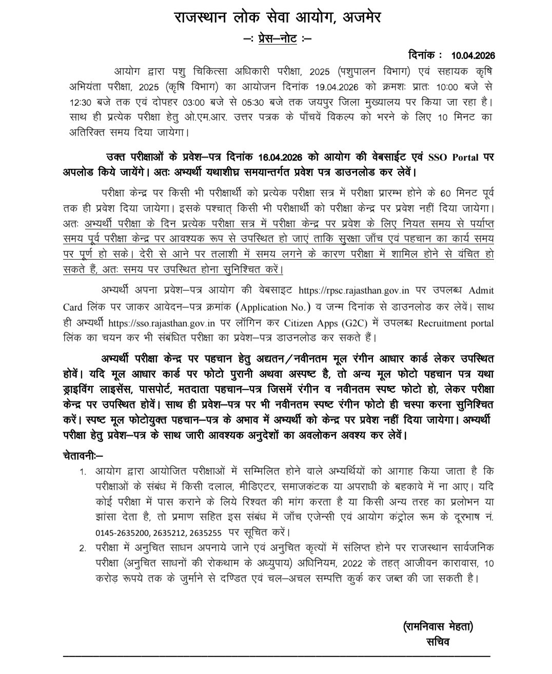 परीक्षा की तिथि के बारे में यहां पर बात करने जा रहे हैं जो की सभी उम्मीदवार को बताना चाहूंगा कि इसके परीक्षा का आयोजन 19 April 2026 को राजस्थान राज्य में अलग-अलग परीक्षा करने पर किया जाएगा।